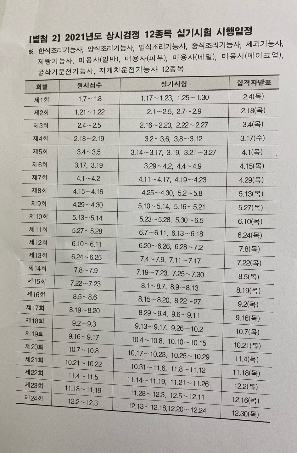 2021년 기능사 자격증 시험일정은 아래와 같습니다.
